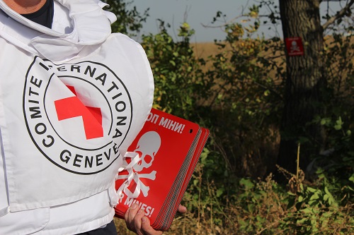 МККК непосредственно не участвует в деятельности по разминированию его роль Украине, как и в большинстве стран, пострадавших от мин во всем мире, заключается в продвижении безопасного поведения и сообщении о рисках, оказании помощи пострадавшим в получении медицинской помощи и средств к существованию, напоминание власти об их обязательствах по международному гуманитарному праву, поддержка развития существующей в стране структуры противоминной деятельности, а также сотрудничество с партнерами, специализирующихся на проведении противоминных действий.