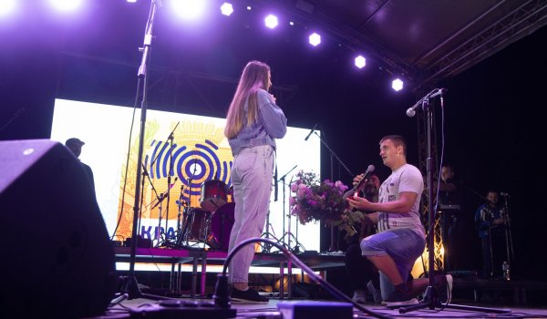 А поскольку в этом году темой фестиваля была любовь, главная сцена не могла без него обойтись: две влюбленные пары подарили зрителям волнующие признания со сцены, и оба раза девушки сказали «Да». Кстати, признание происходят на главной сцене уже не впервые. В этом году на фестиваль приехала пара, которая три года назад публично рассказала о своих чувствах перед многотысячной толпой зрителей — теперь они муж и жена.