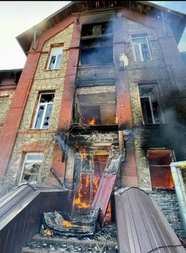 Также российская артиллерия попала в культурное Бельгийское наследие Лисичанска - гимназию, из-за загоревшегося в результате обстрела школа существенно разрушена.