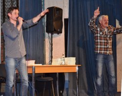 «В романе я описывал реальную автозаправку. Сегодня (творческий вечер прошел вечером 27 апреля, - ред.) мы побывали там. Хотели поговорить с владельцем заправки насчет съемок там, но дежурившая на ней женщина сказала: «Он в Луганске, но на звонки не отвечает». Оставили для него координаты для связи. Пока никто не перезвонил. Надеюсь, хозяин заправки жив, и мы все же пообщаемся», - рассказал Сергей Жадан.