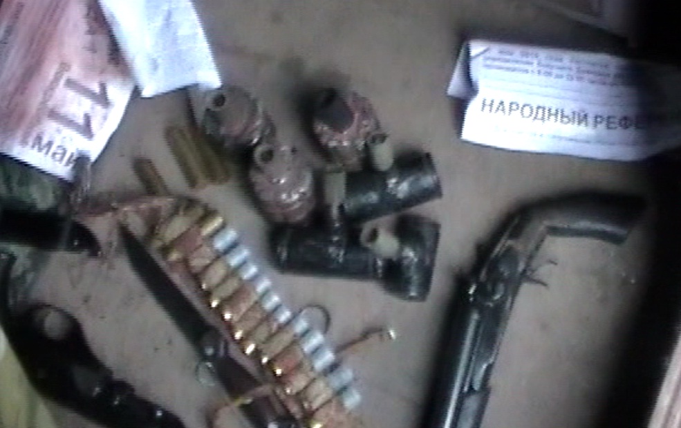 В ходе обыска у задержанного были изъяты агитационные материалы террористического содержания с призывами к свержению конституционного строя и территориальной целостности Украины, самодельные взрывные устройства, большое количество сырья для изготовления взрывчатки.