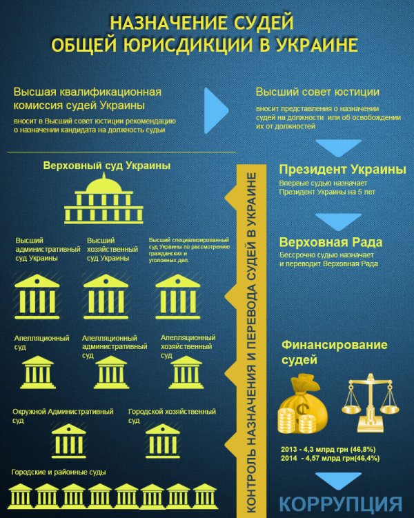 В итоге о какой справедливости может идти речь если в 2012 году судебная система Украины была профинансирована на 3,8 млрд грн. что составляет 38,6% от бюджетного запроса; в 2013 — 4,3 (46,8%); в 2014 - 4,57 (46,4%).