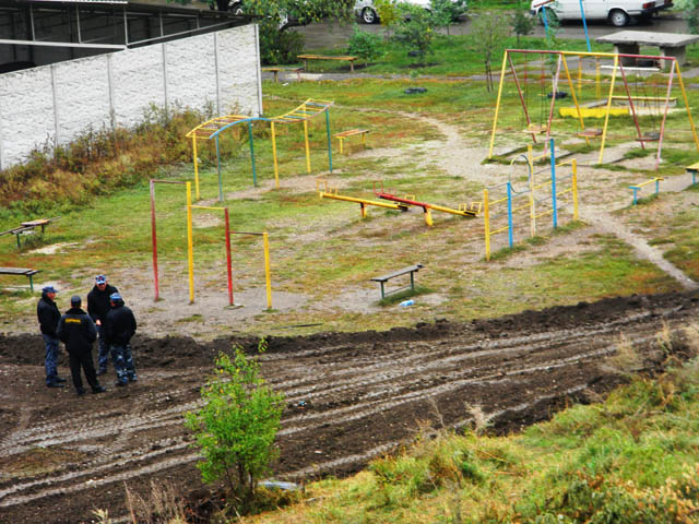 6-10-2011, 13:04 Новости Луганска | НапечататьВо вторник, 27 сентября, произошла потасовка между жителями ул. Победоносной и охраной стройки в их дворе. В пятницу полтора десятка мужчин перегородили дорогу КАМАЗу и принялись забрасывать его камнями. Самосвал этот привез гравий, чтобы через детскую площадку проложить дорогу к автостоянке, которую один частный предприниматель решил построить во дворе, на месте бывшего футбольного поля и волейбольной площадки