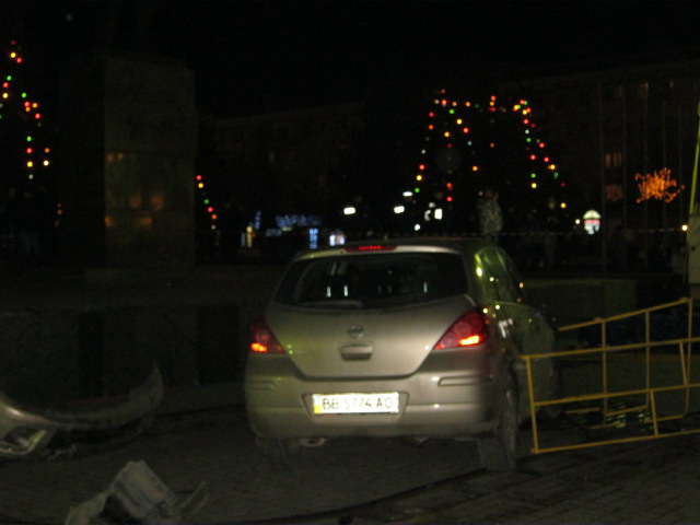 Автомобиль «NISSAN TIIDA», под управлением водителя 1982 года рождения, жителя города Луганска, не работающего, двигаясь по улице Коцюбинского в направлении Театральной площади, не обращая внимания на установленные дорожные знаки «Въезд запрещен» и «Объезд препятствия справа», совершил столкновение с переносным металлическим ограждением площади, продолжая движение, совершил наезд на группу молодежи, отдыхающую возле новогодней елки.