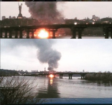 Из-за пожара над Днепром поднялся огромный столб черного дыма, который закрывает даже гигантскую скульптуру Родины-матери и его видно даже с центра Киева.