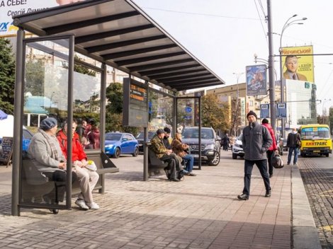 В Киеве на площади Победы появились умные остановки общественного транспорта, на которых пассажиры теперь могут узнать время прибытия нужного транспорта, посмотреть маршрут и расписание на табло.